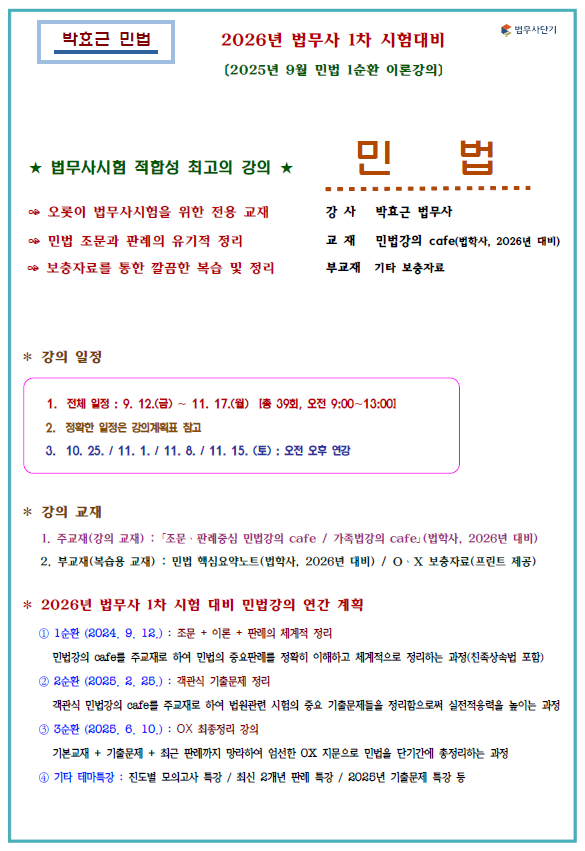 [법무사단기] 250908(월) 2026년 법무사 1차 1순환 민법 (박효근)_강의계획서.pdf