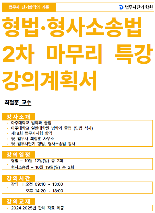 10/19(일) 오전, 오후 - 형사소송법(최철훈T) 마무리 특강