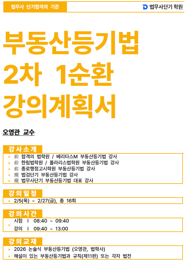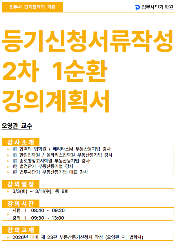 - [법무사단기] 260205(목) 2026년 법무사 2차 1순환 부동산등기법 오영관_강의계획서.pdf 0.072MB