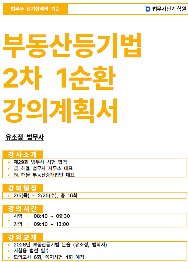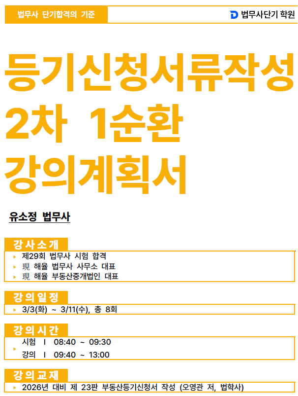 - [법무사단기] 260205(목) 2026년 법무사 2차 1순환 부동산등기법 유소정_강의계획서.pdf 0.067MB