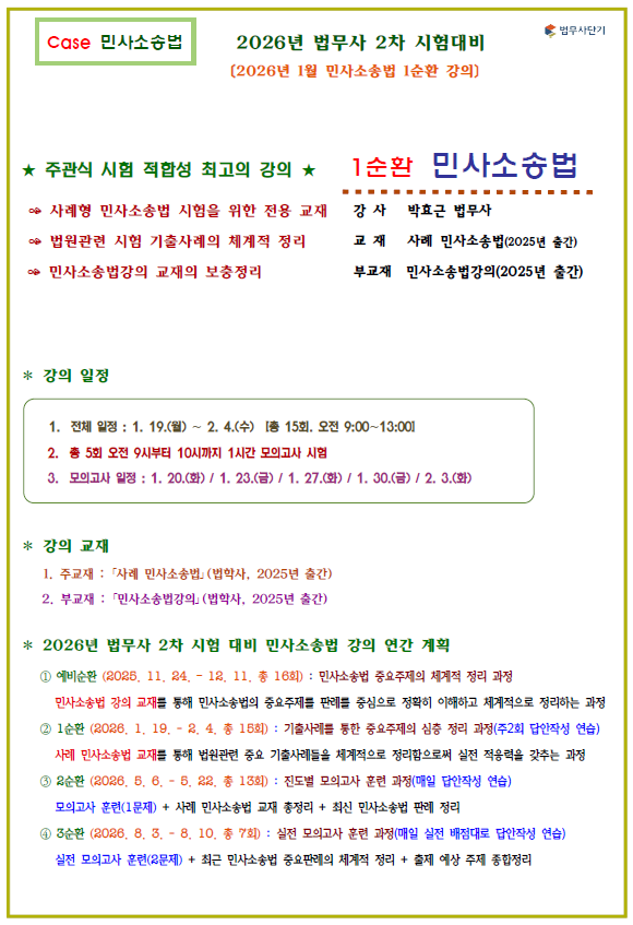 - [법무사단기] 260119(월) 2026년 법무사 2차 1순환 민사소송법 박효근_강의계획서.pdf 0.185MB