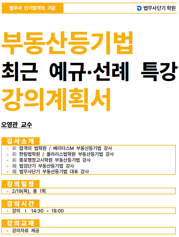 2026년 법무사 부동산등기법 최근 예규 선례 특강 오영관_강의계획서 (2/19 개강)
