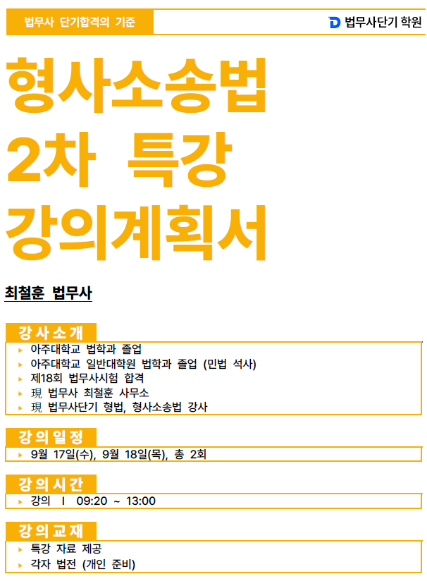 2025년 법무사 2차 형사소송법 상소 재심 무료 특강 최철훈_강의계획서 (9/16 개강)