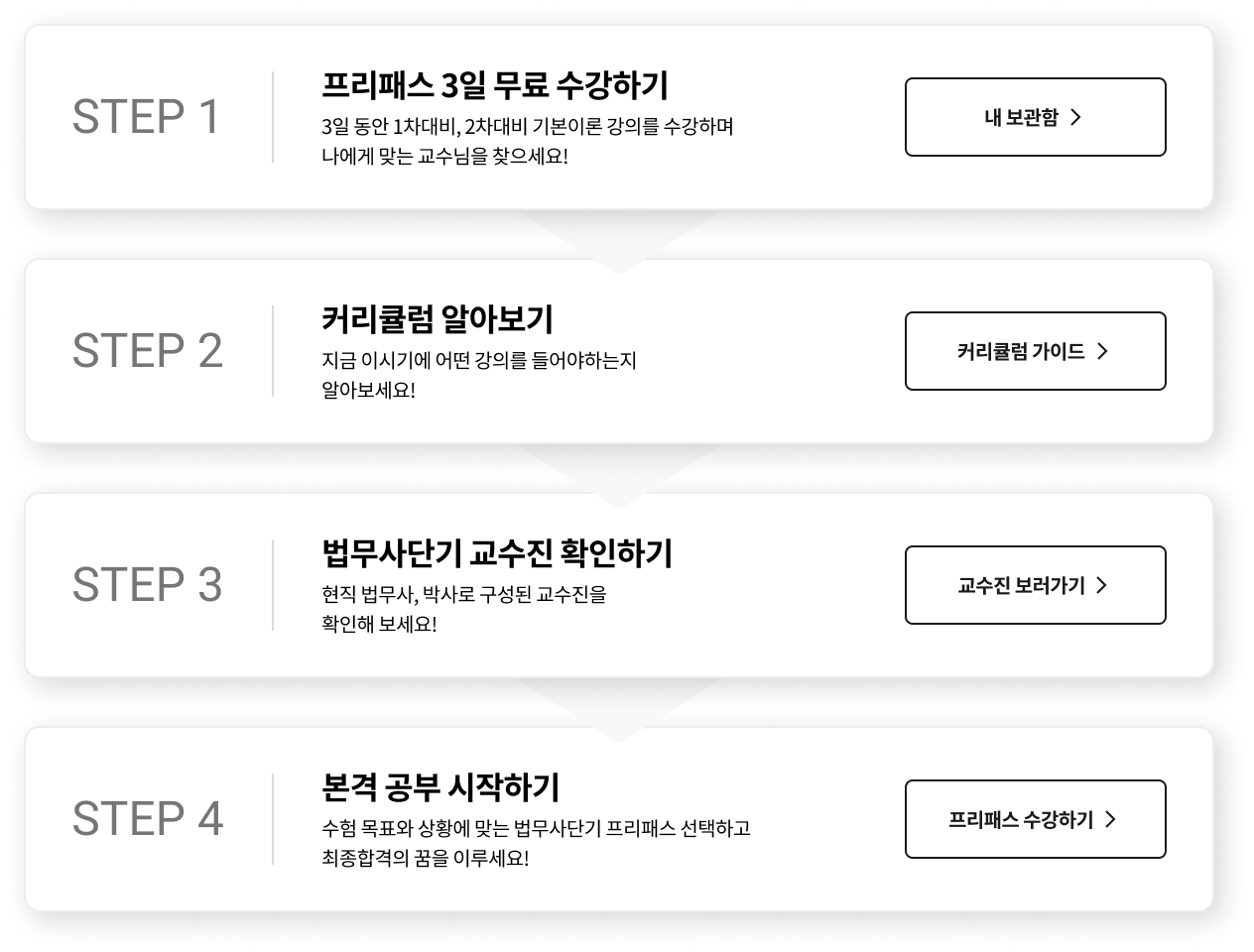 프리패스 3일 무료 수강하기 커리큘럼 알아보기 법무사단기 교수진 확인하기 본격 공부 시작하기